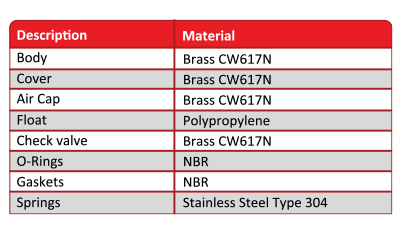 Solid brass construction with long life polypropylene float