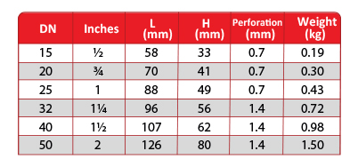 Other screen materials and perforation sizes available on request